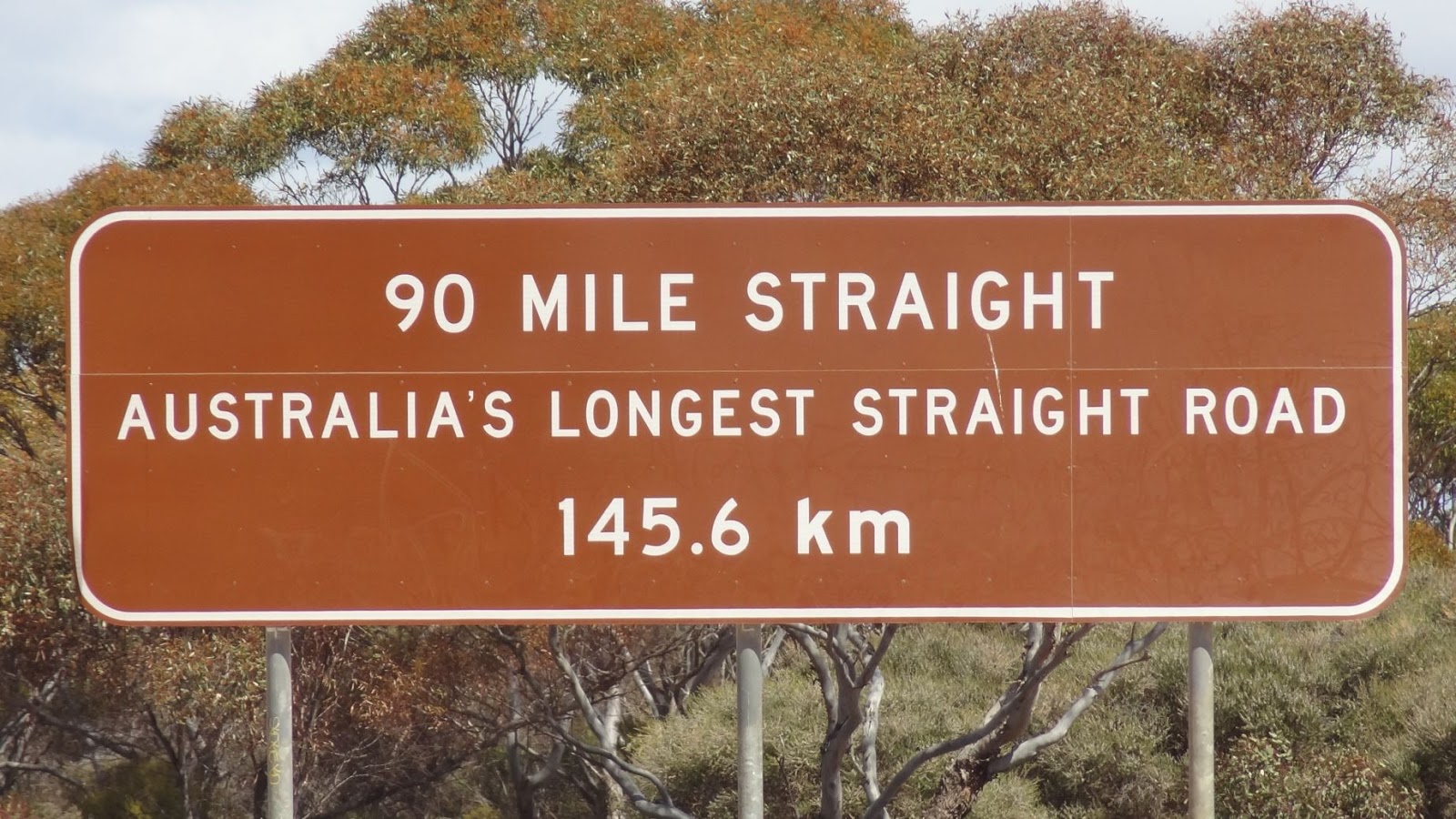 The majority of the vegetation is bluebush as an understory of eucalypt mulga with patches of low saltbush scrub. However the biggest visual impact is the straight sections of road – 90 Mile Straight (145.6 km) gets all the PR focus, but the entire trip is dominated by a series of other straights, many of up to 100km, and each connected by the merest slight curve. Some relief is found at Madura Pass where you drop about 180 metres to the Roe Plain, and then, after 120 km, pop back up at Eucla.